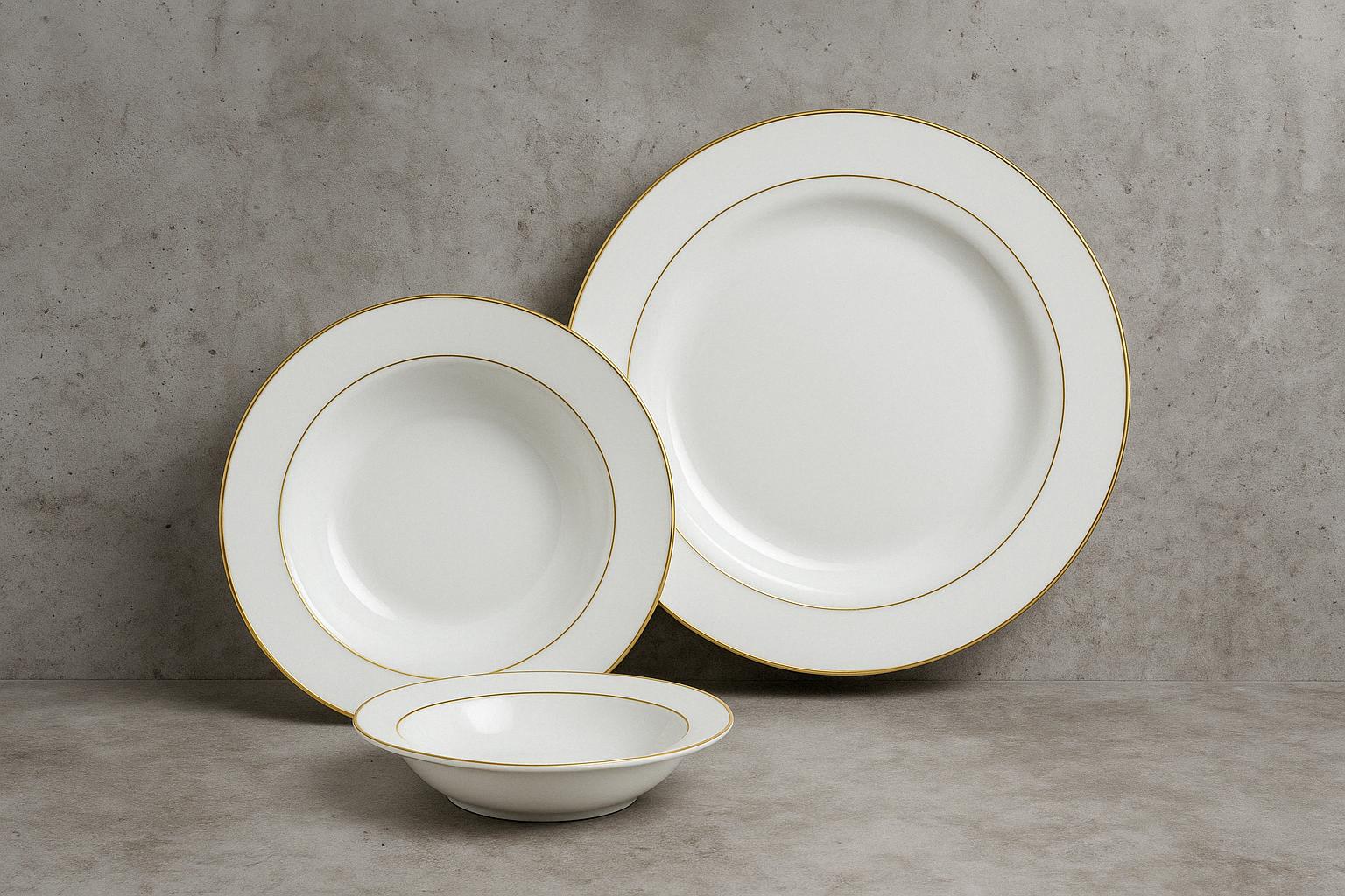 Enhance your home with the 12 Piece Traditional Gold rI'm and white Porcelain Dinnerware Set Service for 4 TS20190815/313283813 850016550019 Unbranded from Unbranded.