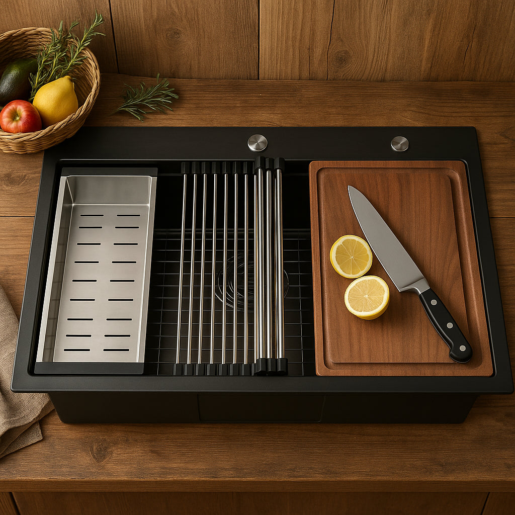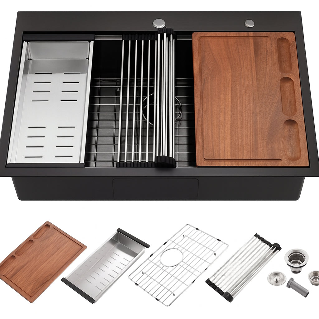 27 in Drop in Single Bowl 18 Gauge Black Stainless Steel Workstation Kitchen Sink ACS2722A1T WB offers dependable performance and clean design for everyday use.