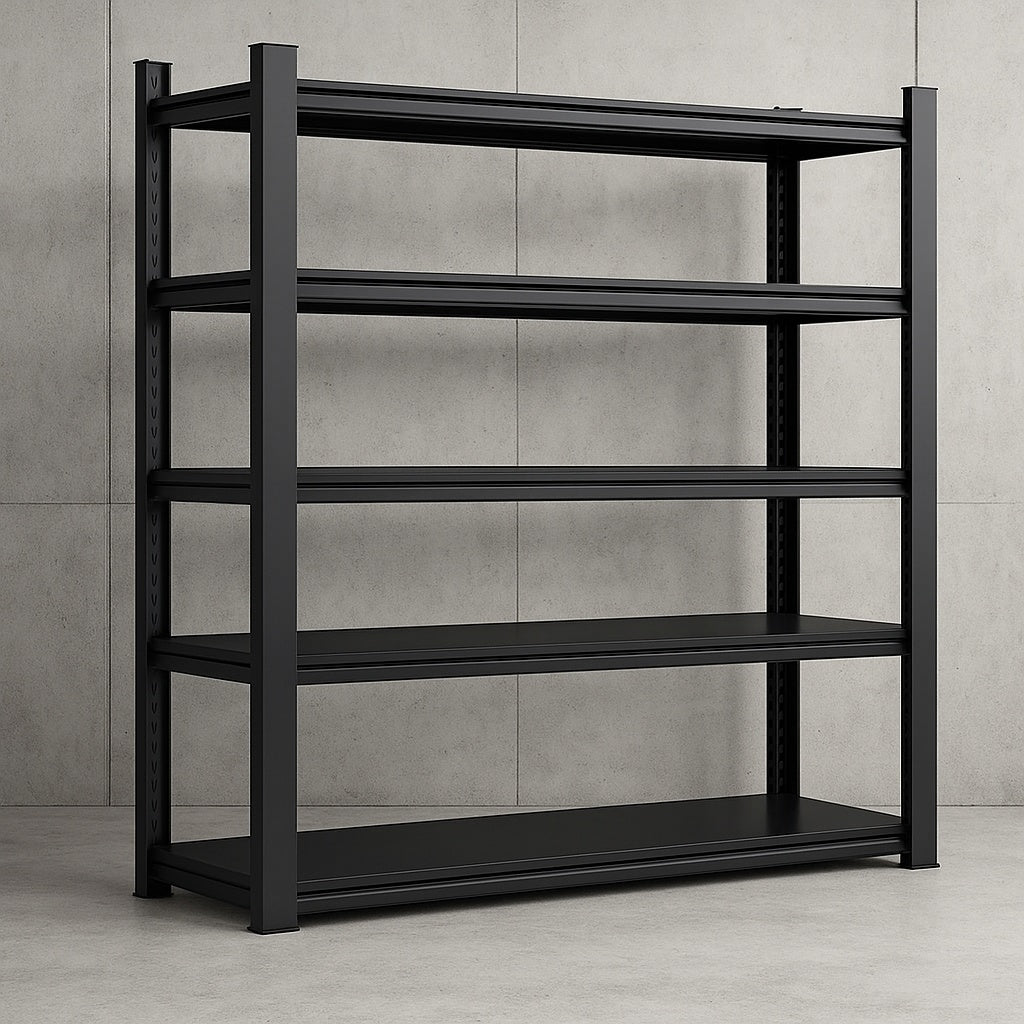 "5-Tier Adjustable Metal Shelves in Black, 2000 lbs. Heavy Duty Storage Shelves, Garage Shelf Industrial Shelving Units"