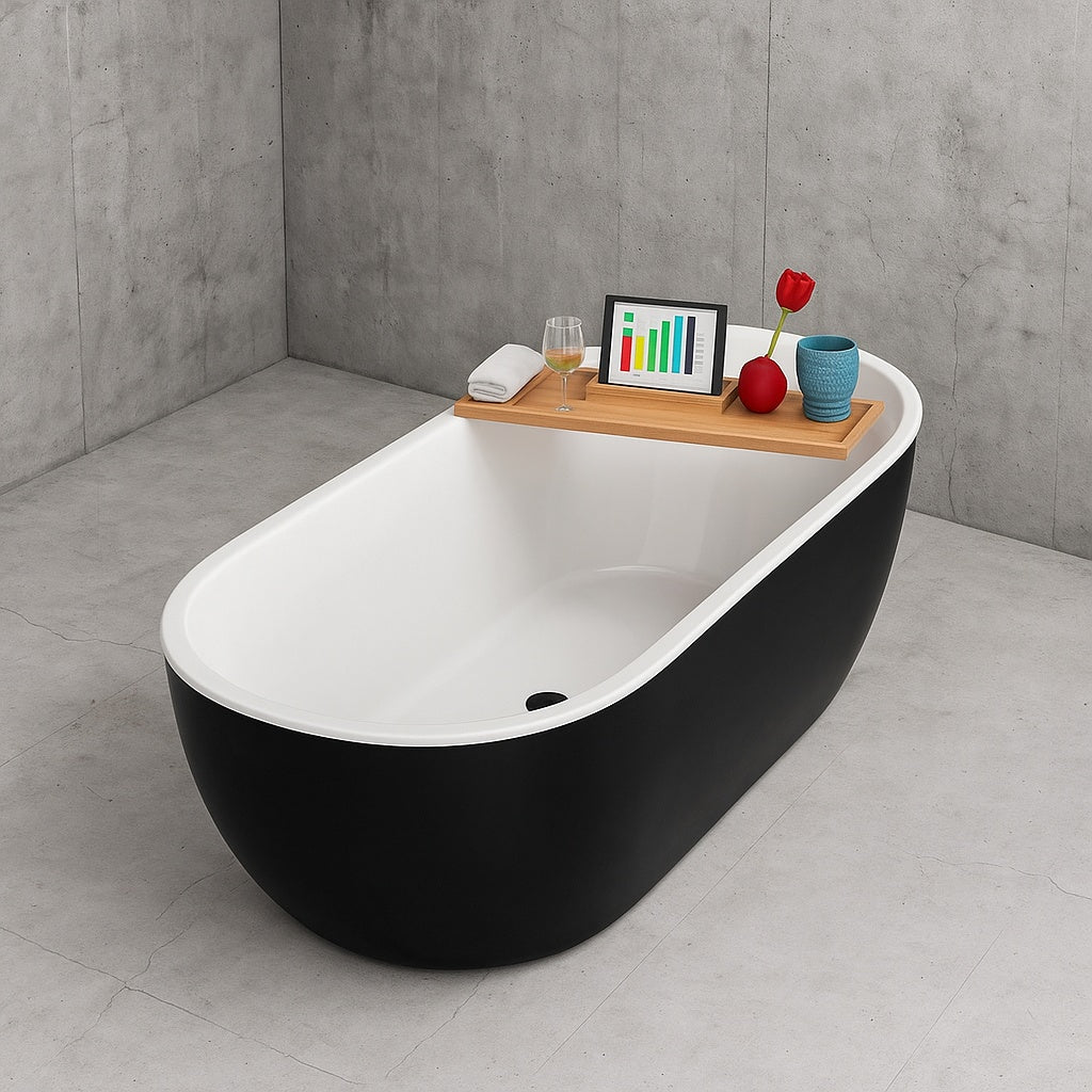 59 in. Acrylic Flatbottom Freestanding Bathtub in Glossy Black with Matte Black Drain by Streamline delivers exceptional quality and design in the category of kitchen and bath.