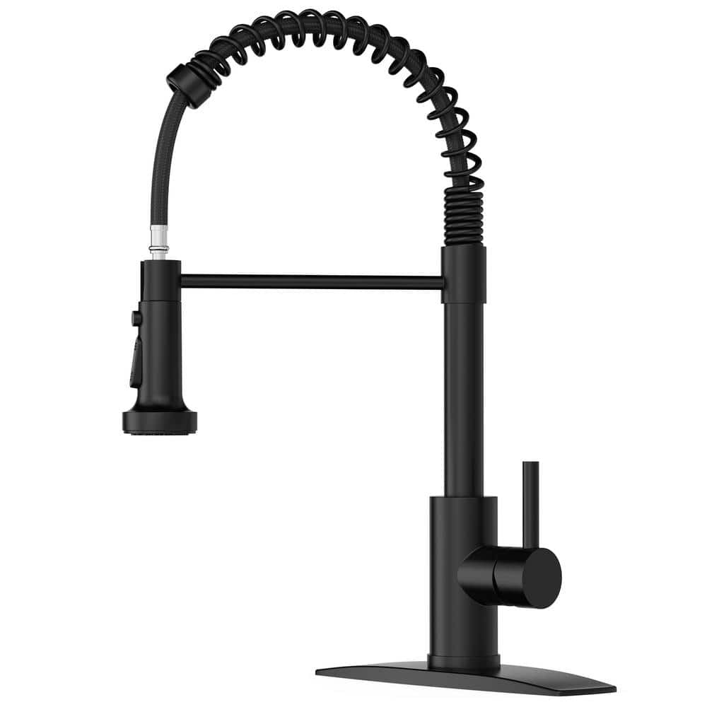 Upgrade your home with the androme Single Handle Pull Down Sprayer Kitchen Faucet with Deckplate and Spring Neck Pull Out Swivel Spout in Matte Black. Designed for durability and style, this model H004B blends functionality with a modern look.
