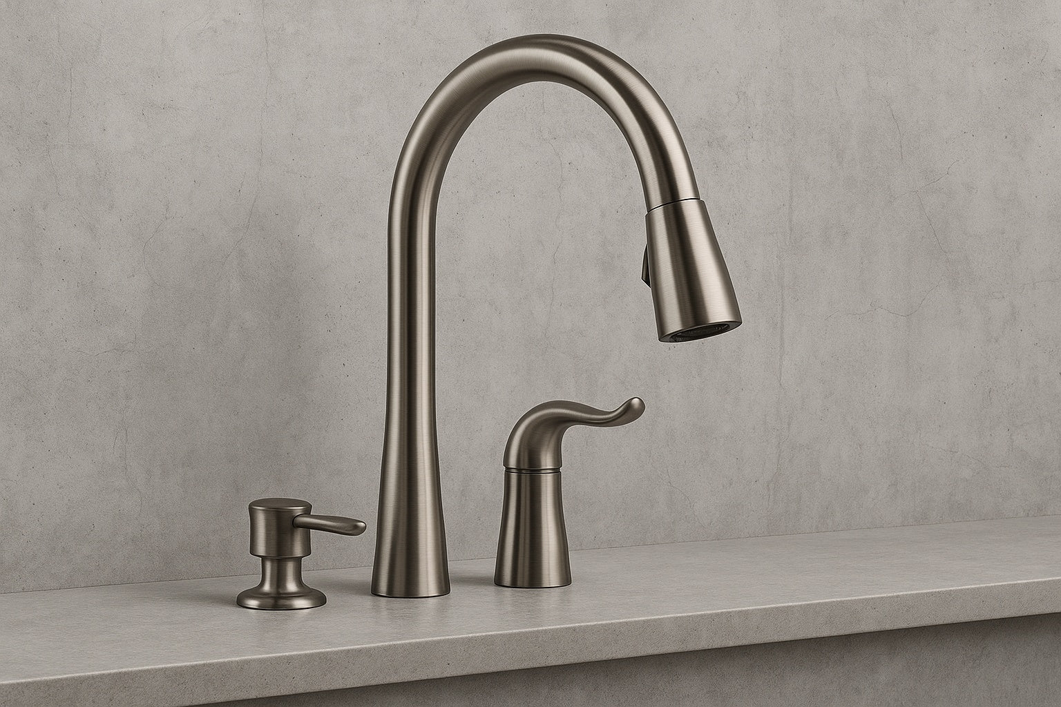 The Delta Kate Pull-Down Kitchen Faucet features a sleek design with MagnaTite® docking to secure the spray wand and DIAMOND Seal® Technology for cleaner, contaminant-free water.