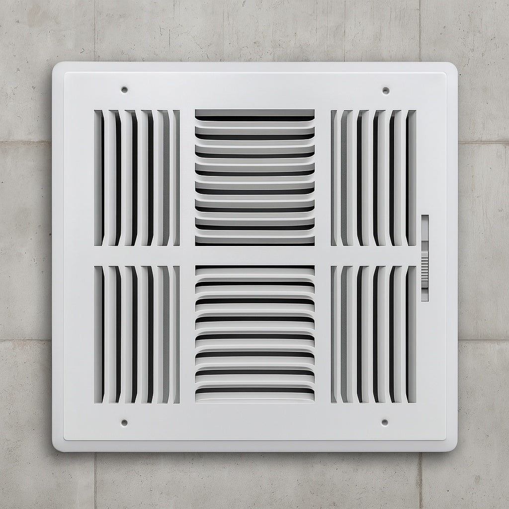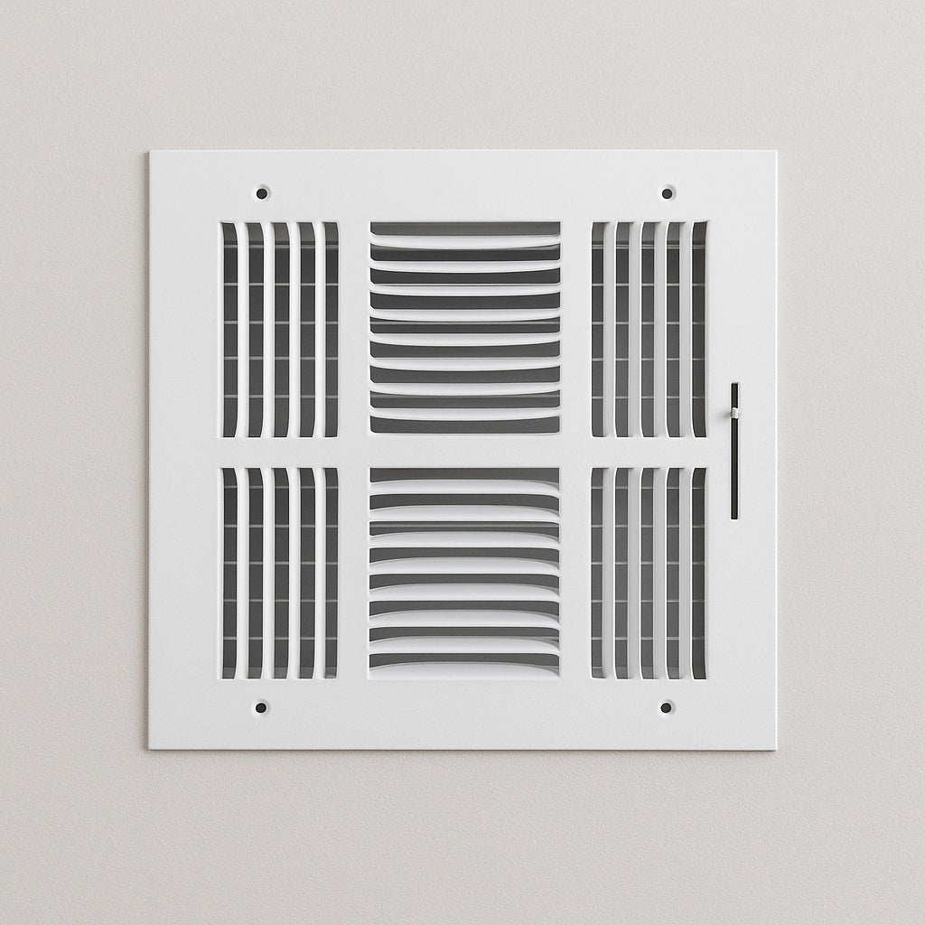 10 in. x 10 in. 4 Way Steel Wall/Ceiling Register in White E104M10X10