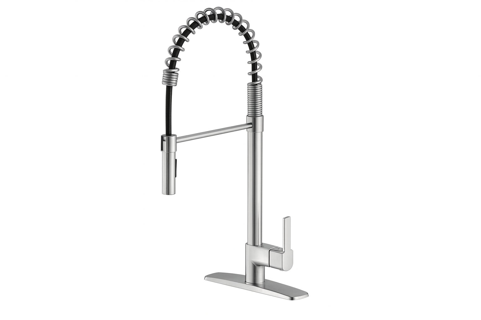 FLOW Classic Series Single-Handle Pull-Down Spring Neck Sprayer Kitchen Faucet in Brushed Nickel offers dependable performance and clean design for everyday use.