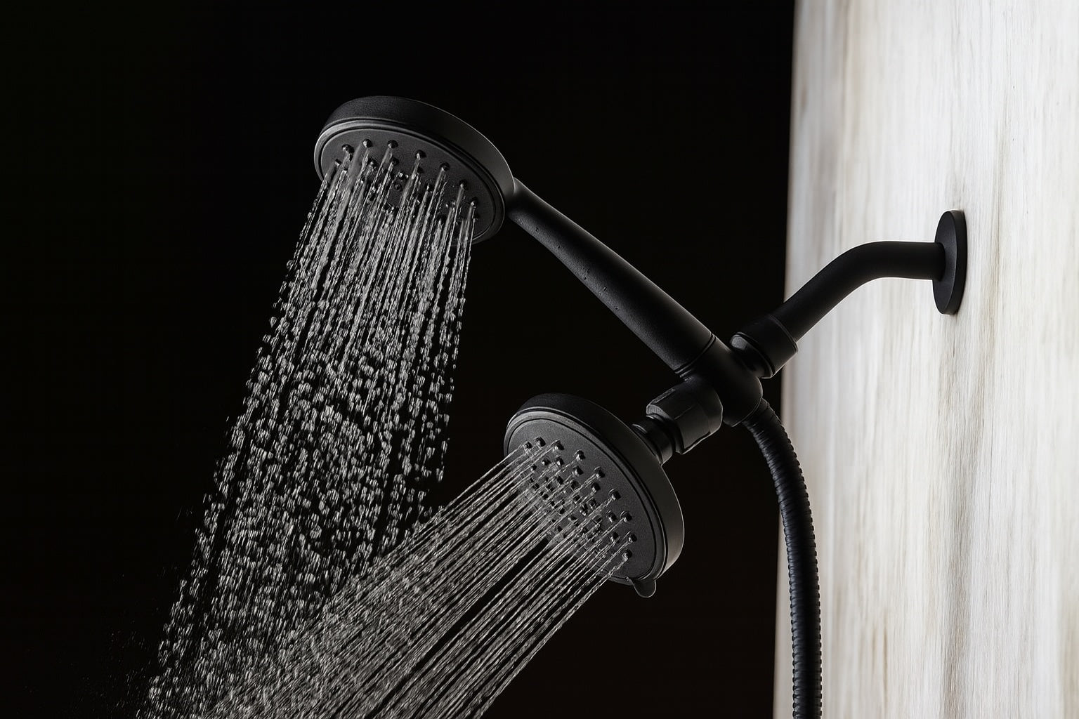 6 -Spray Patterns with 1.8 GPM 4.5 in. Wall Mount Dual Shower Heads in Matte Black