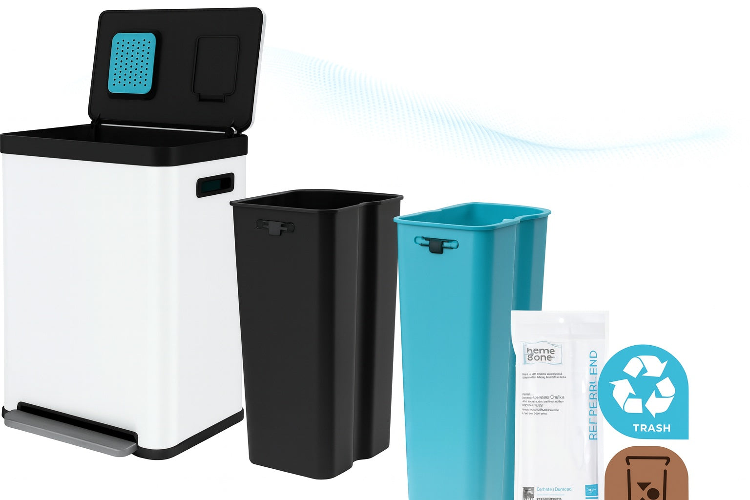 Home Zone Living 18.5 Gal. Stainless Steel Step-On Kitchen Trash Can with Dual Compartments and Odor Control