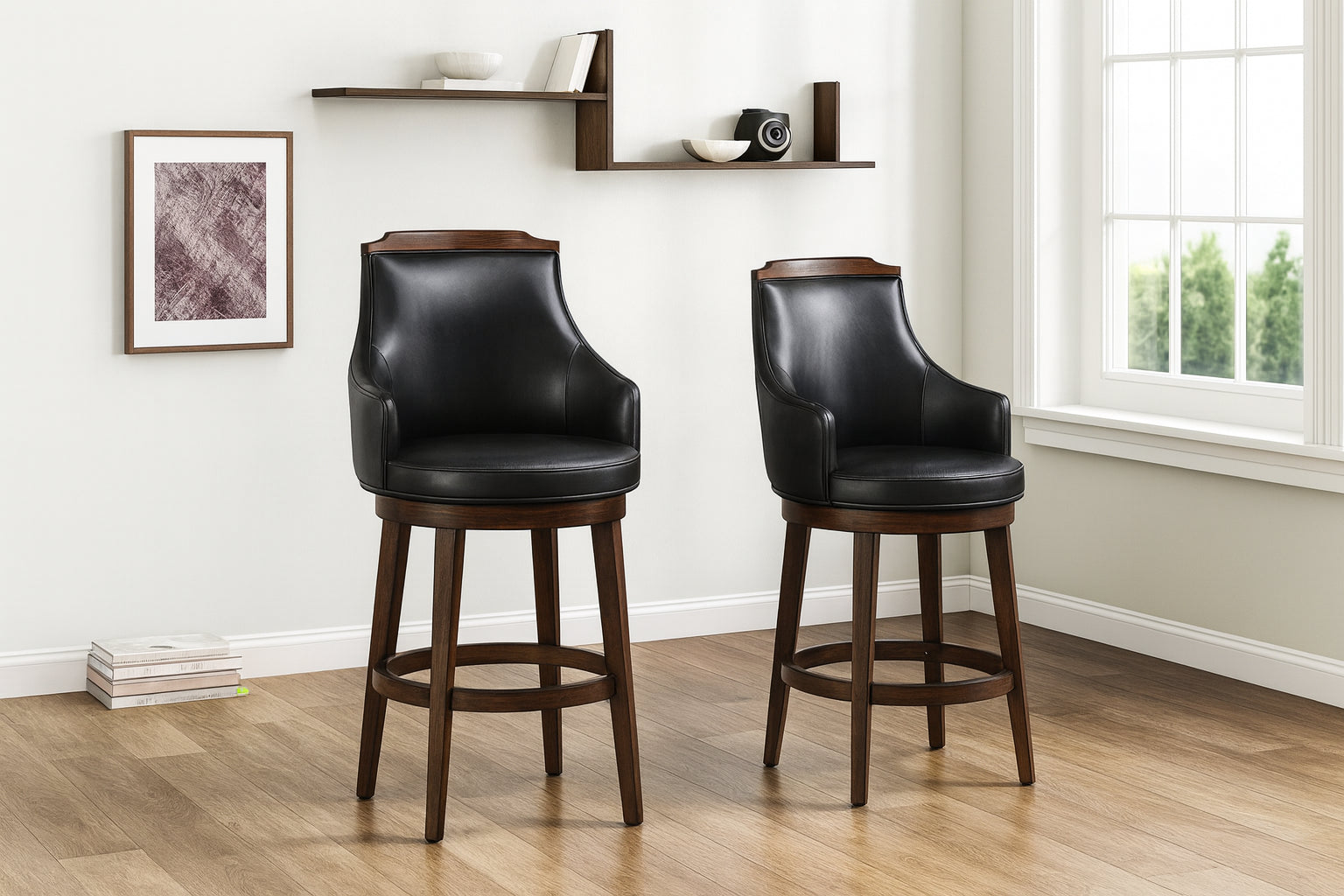 Lazzara Toulon 28 in. Burnished Oak Finish Wood Swivel Pub Height Chair with Dark Brown Faux Leather Seat (Set of 2) offers dependable performance and clean design for everyday use.
