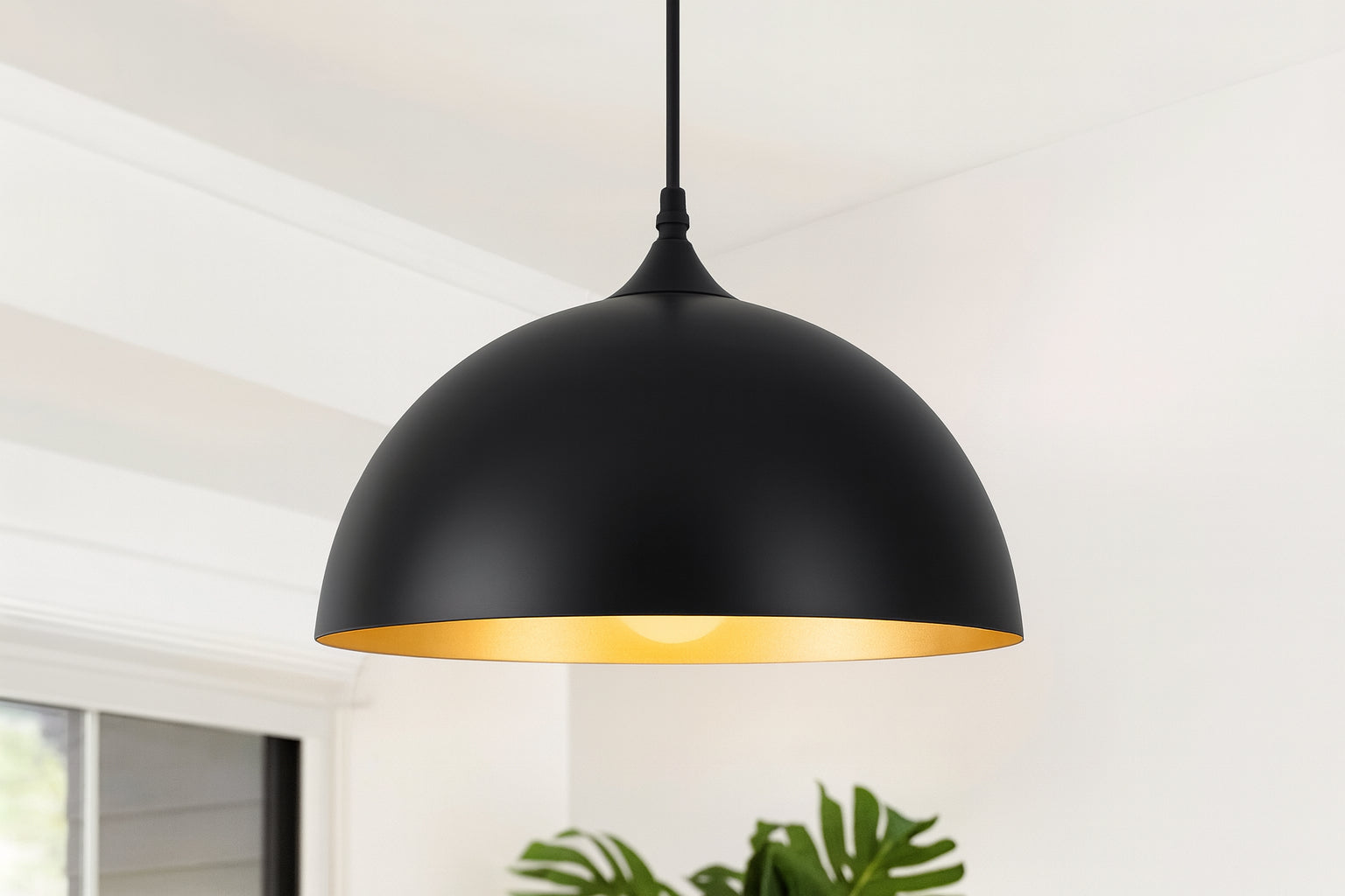 LWYTJO Danialah 1-Light Black Industrial Farmhouse Single Pendant Light with Metal Dome Shade for Kitchen Island Dinning Room