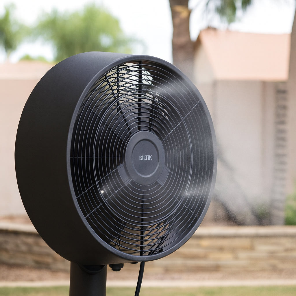 NewAir 18 in. 3-Speed Wide-Angle Oscillating Outdoor Misting Fan and Pedestal Fan for Cool Down 500 sq. ft. - Black