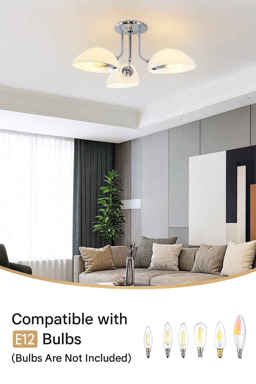 ZJVAIVE 23 62 in 3 Light Nickel Modern Semi Flush Mount Ceiling Light Fixture with Glass Shade for Kitchen Island
